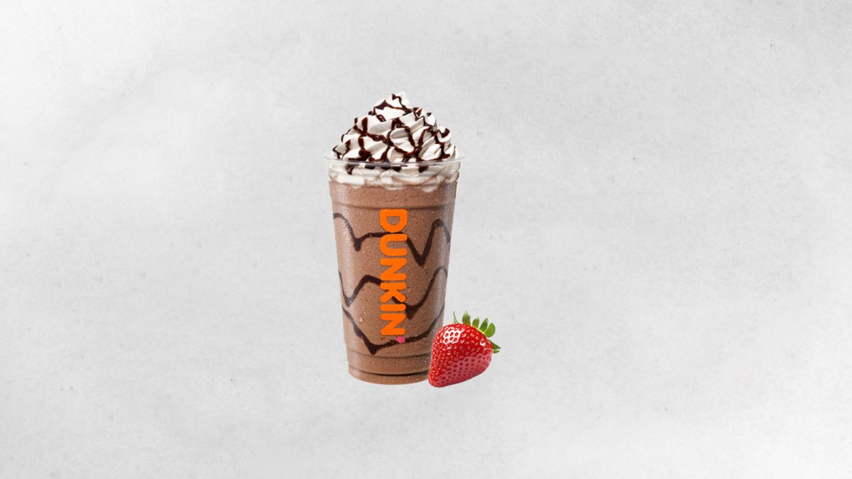 Espresso, Erdbeer-Püree, French Vanilla Sirup, White Chocolate Sirup, Milch, Schlagobers