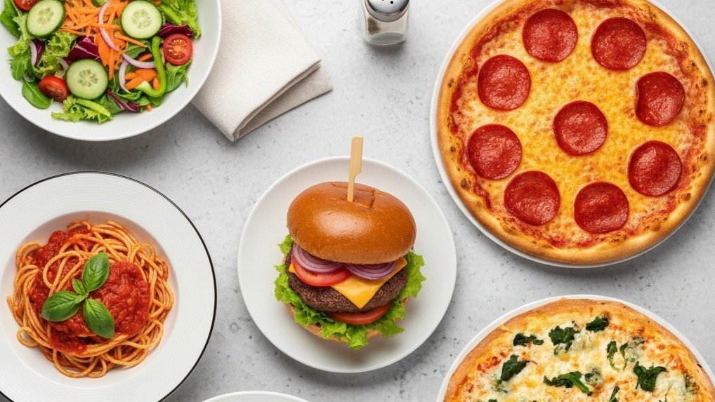 Genießen Sie frische Salate, Pizza, Pasta & Burger