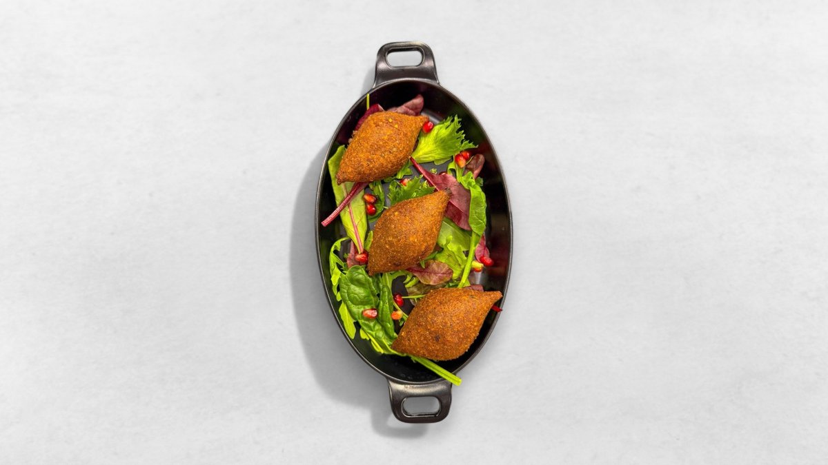 3 Stück, Bulgur-Teigtaschen, Rinderhackfleisch, geröstete Zwiebeln, aromatische Gewürzen