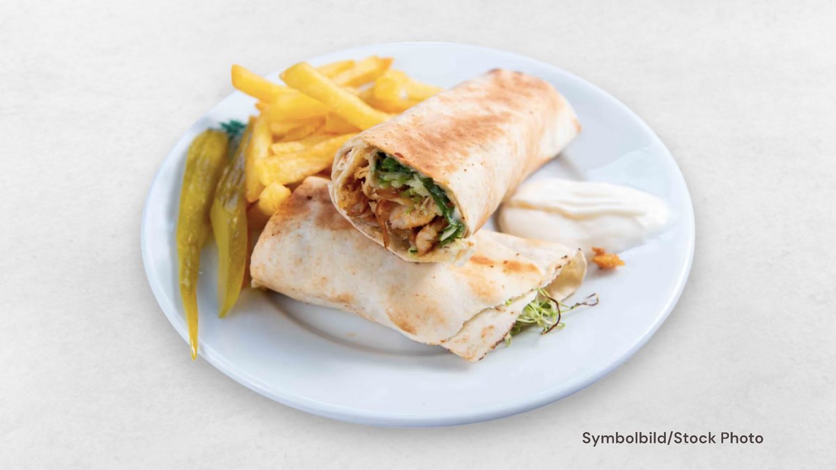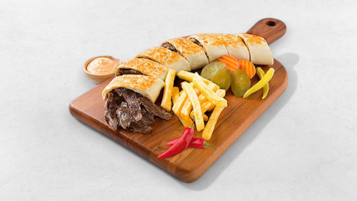 Rindfleisch-Shawarma, Tomate, Zwiebeln, Tahina-Soße, Beilage deiner Wahl