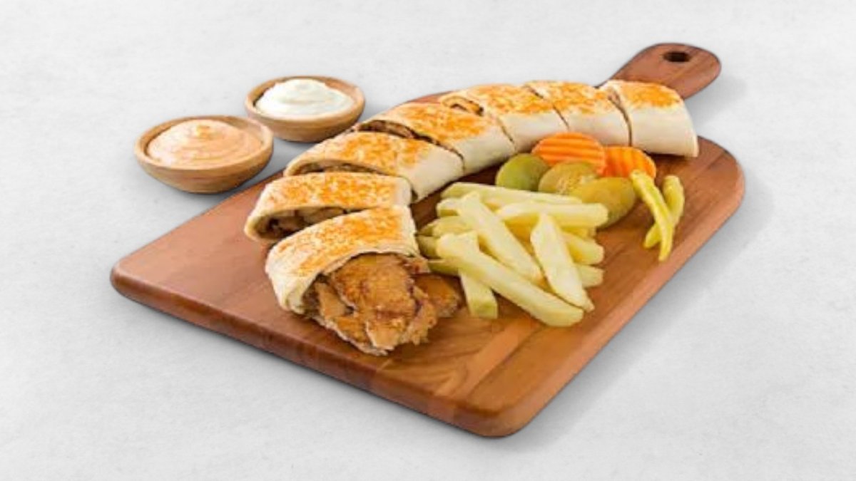 Huhnshawarma, aromatische Knoblauchsoße, Beilage deiner Wahl