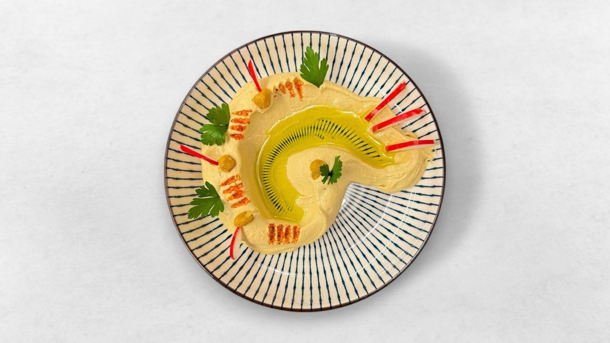 Zartes Kichererbsenmus, Sesamöl, Spritzer Zitronensaft