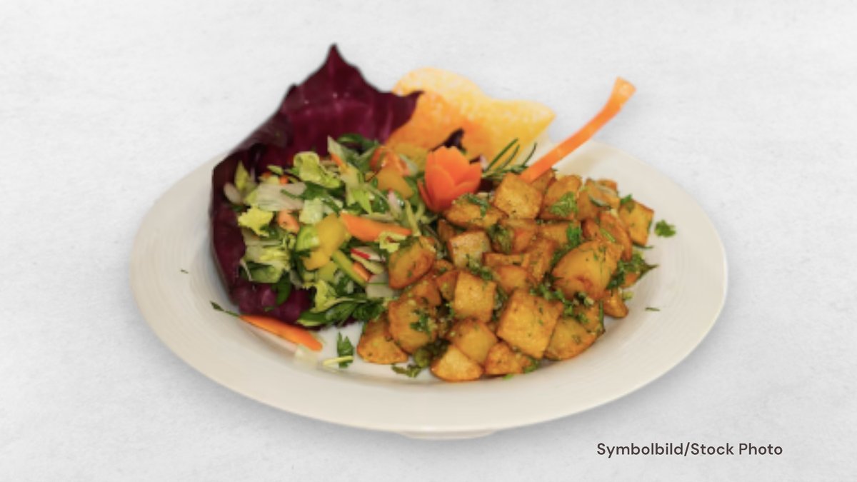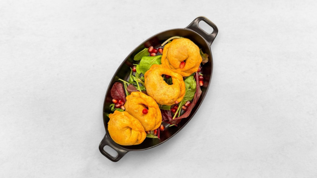 4 Stück hausgemachte Teigtaschen, würzig gewürzte Kartoffeln, orientalische Kräutern