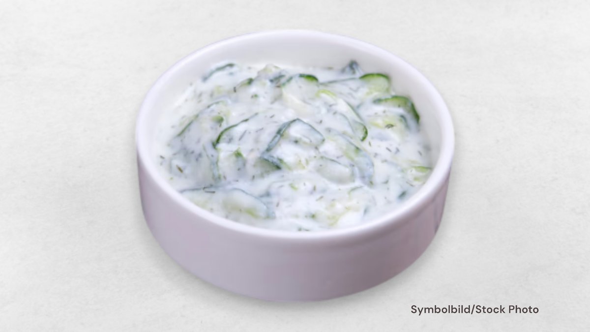 Traditioneller Joghurt-Gurkensalat, frische Minze, cremige hausgemachter Joghurt