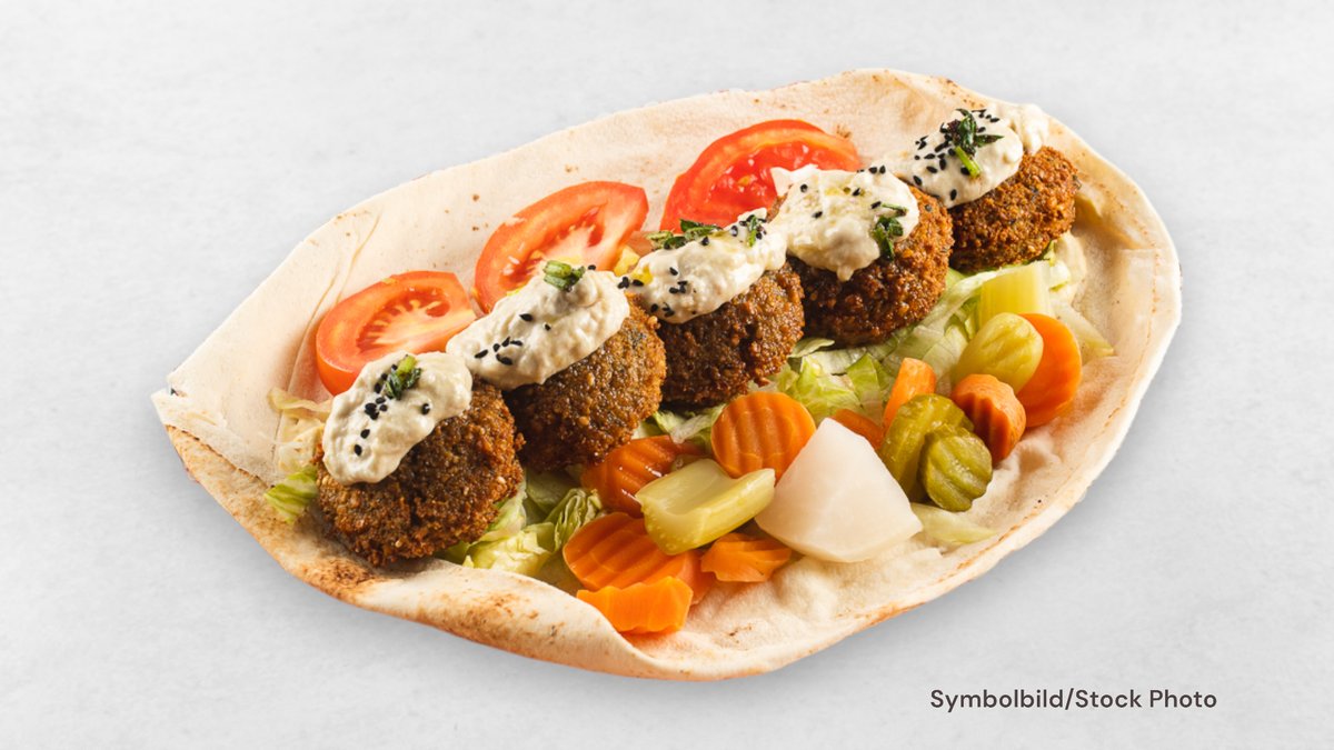 Knusprige Kichererbsenbällchen, knackige Gemüse, Tahina-Soße