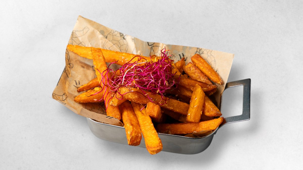 Saftige Käsekrainer-Stücke, knusprige Pommes, Ketchup, cremige Mayo, knusprige Röstzwiebeln, Essiggurken, frischer Schnittlauch