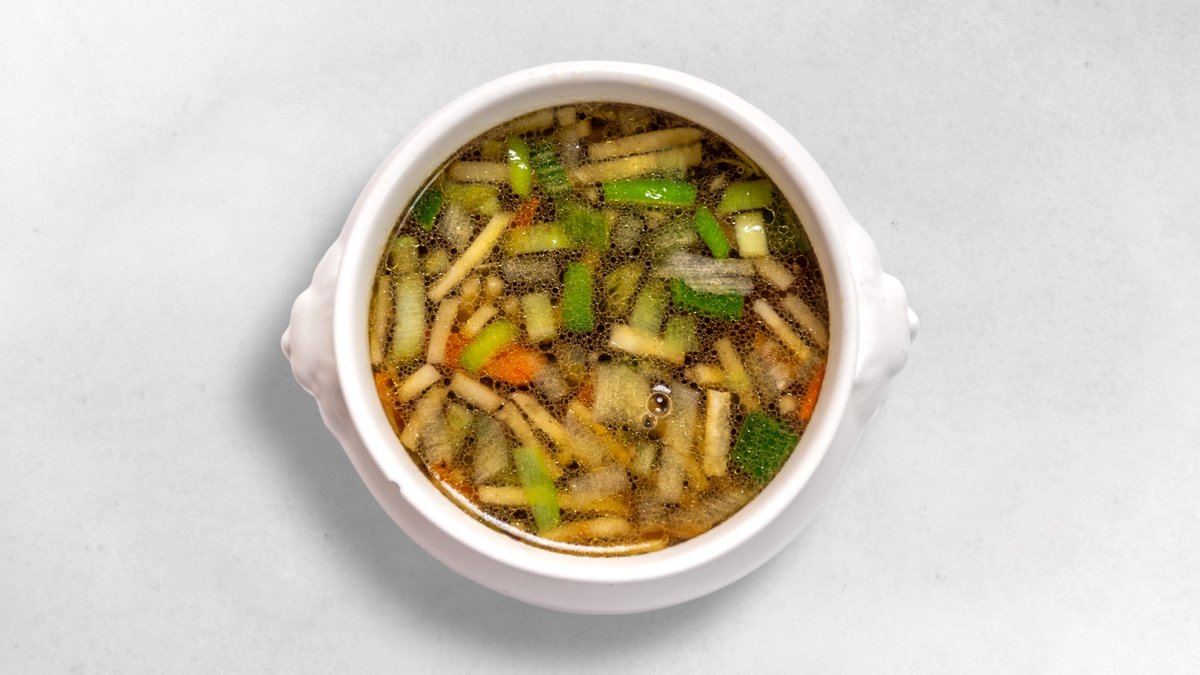 mit Nudeln, Wurzelgemüse und Rindfleischstreifen