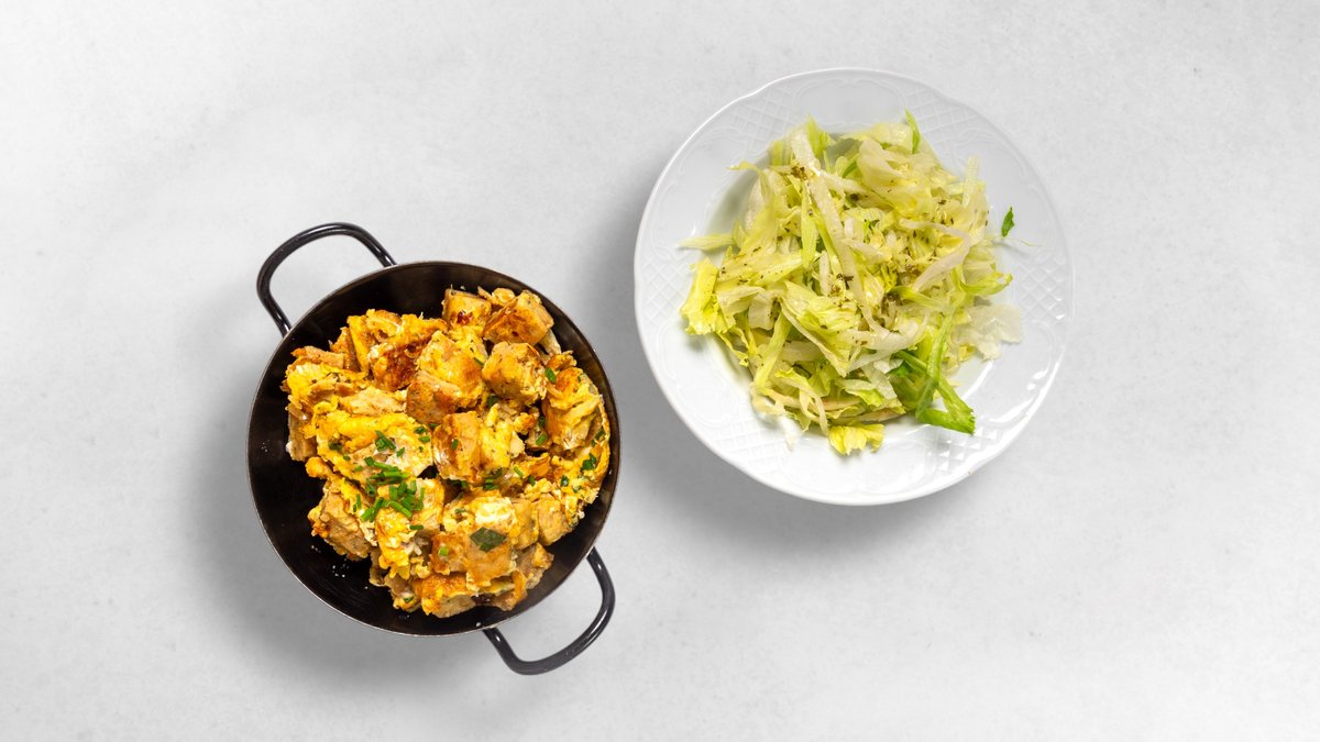 Alle Lieblingsschmakerl werden mit Cocktail-Knoblauchsoße und Braterdäpflen zubereitet