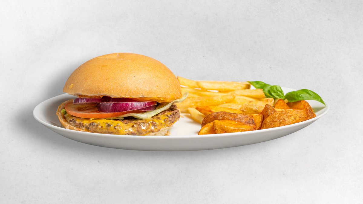 Alle Burger werden in einer Größe nach Wahl mit Rind, Beilage, Soße und Getränk nach Wahl serviert