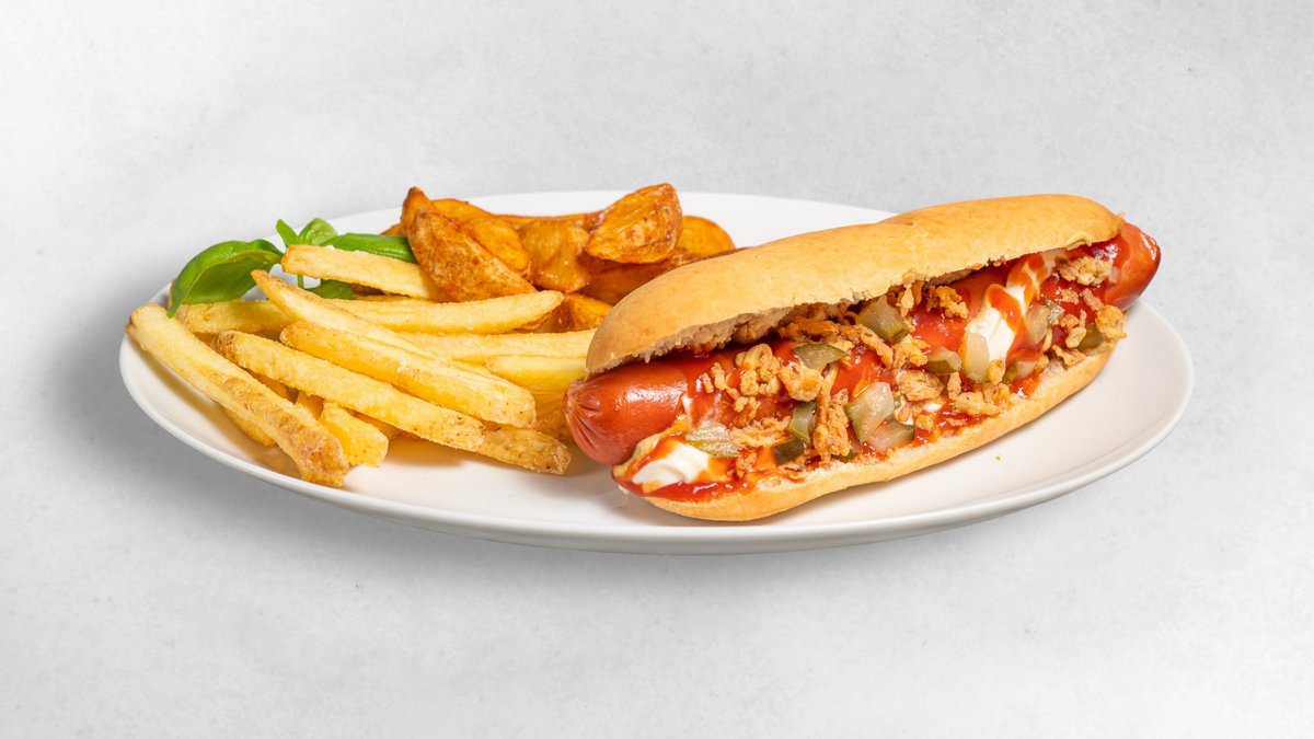 Alle Hotdog werden mit Beilage, Soße und Getränk nach Wahl serviert
