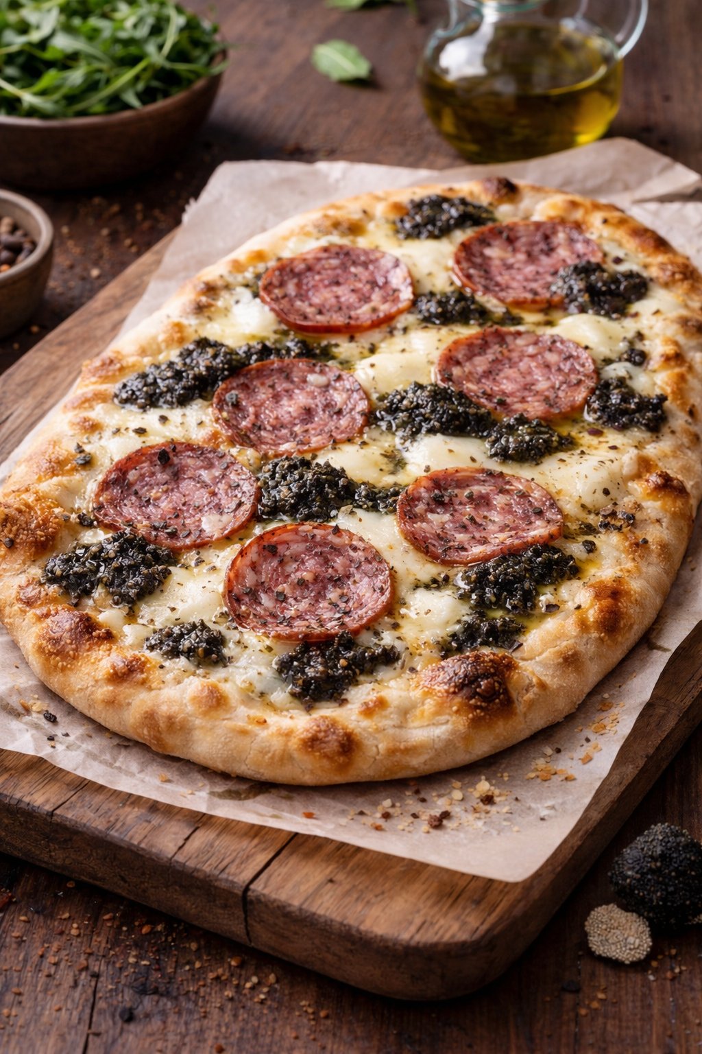 römisches Fladenbrot, leichtere und bekömmlichere Variante der Pizza, Teig wird aus einer Mischung von Weizen-, Soja- und Reismehl hergestellt, von Hand geformt