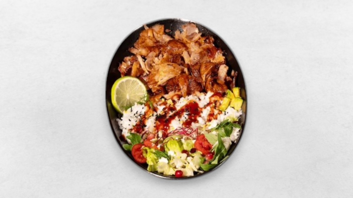 Reis, 100% Putenfilet, Salat, Toppings nach Wahl