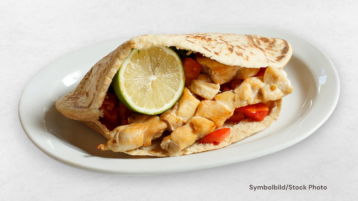 2x Spieße aus gemischter Rind-& Lammfleisch, Fladenbrot, scharfe Tomatensoße, Salat