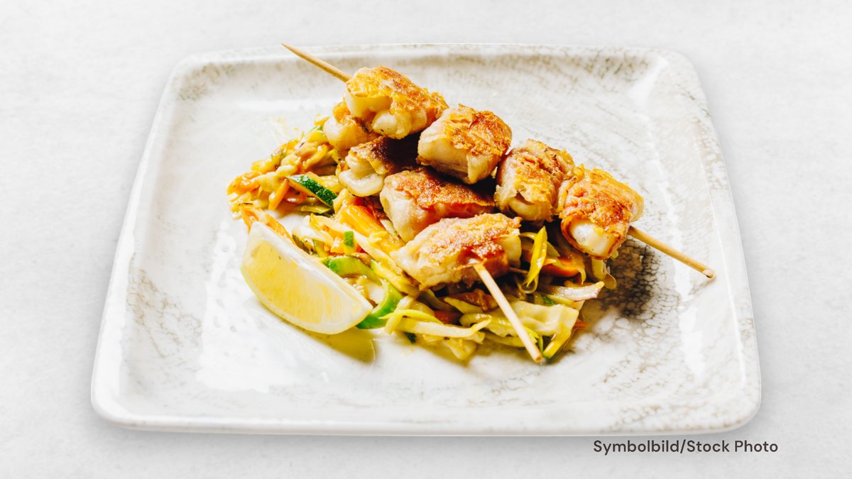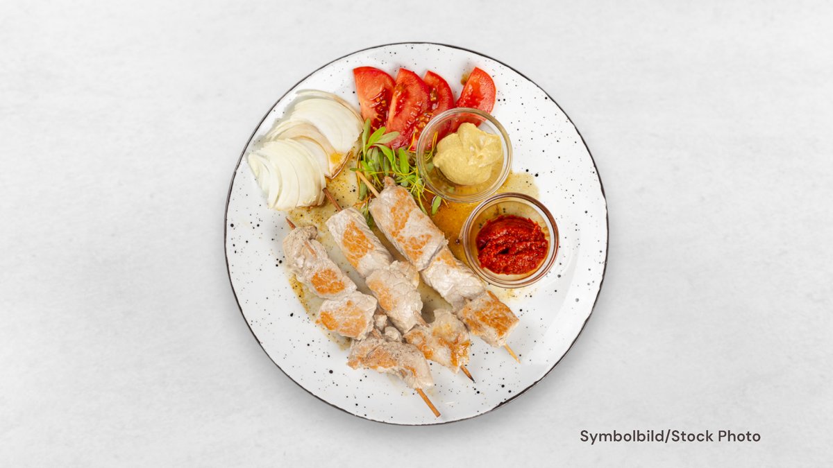 2x Spieße aus gemischtem Rind-& Lammfleisch Safranrels & Salat