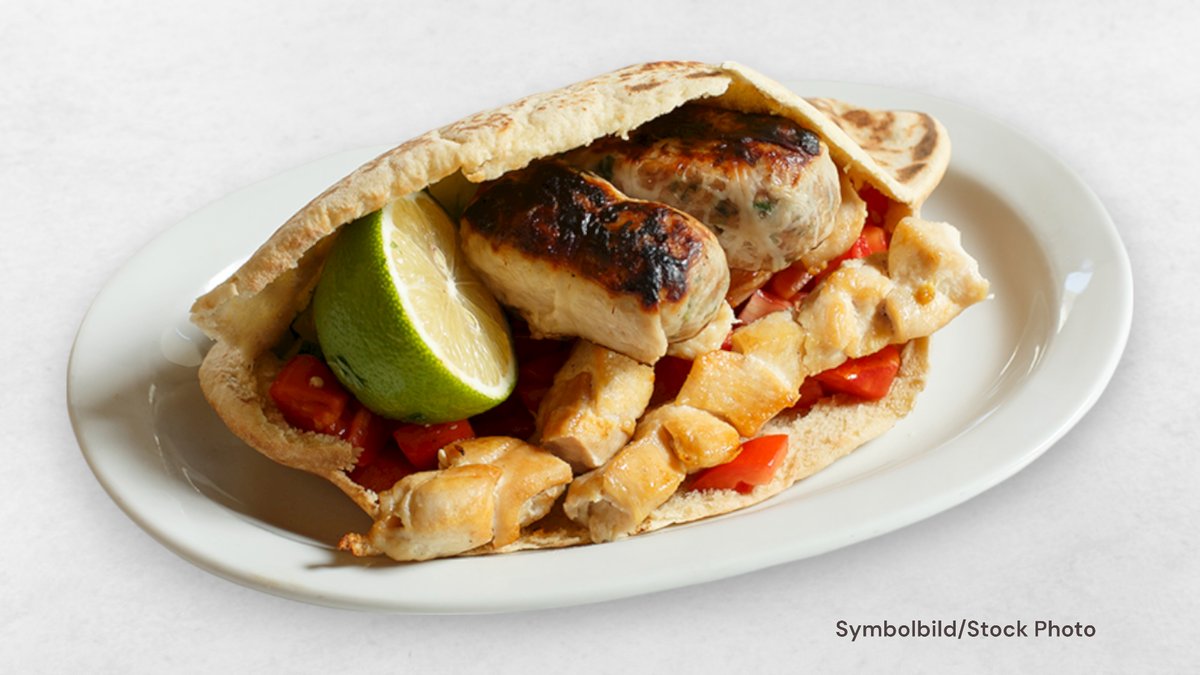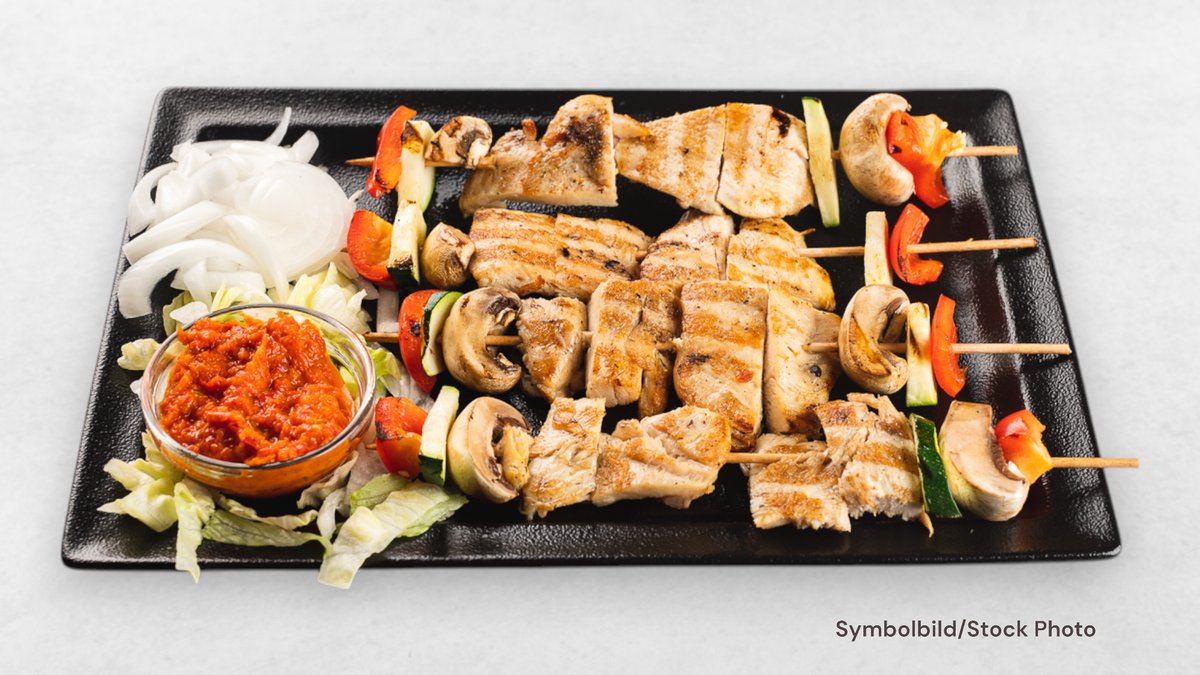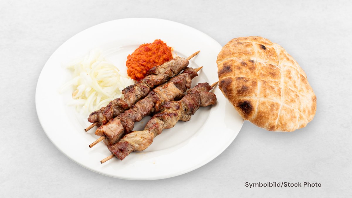 2x Spieße aus gemischtem Rind-& Lammfleisch Brot & Salat
