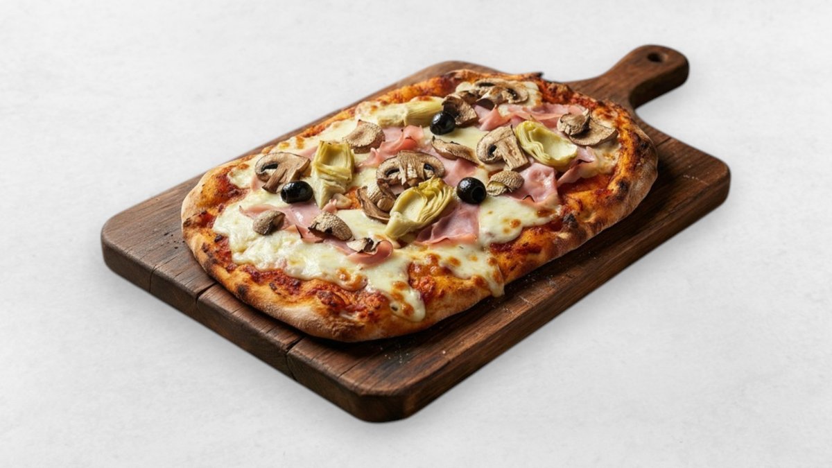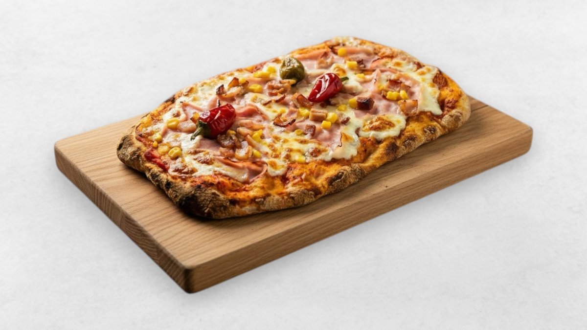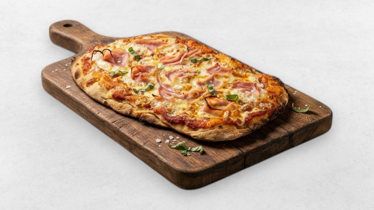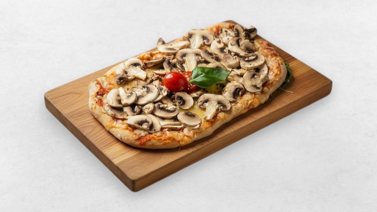 Alle Gerichte werden mit Mischung von Weizen-, Reis- & Sojamehl, Mozzarella, Tomaten zubereitet