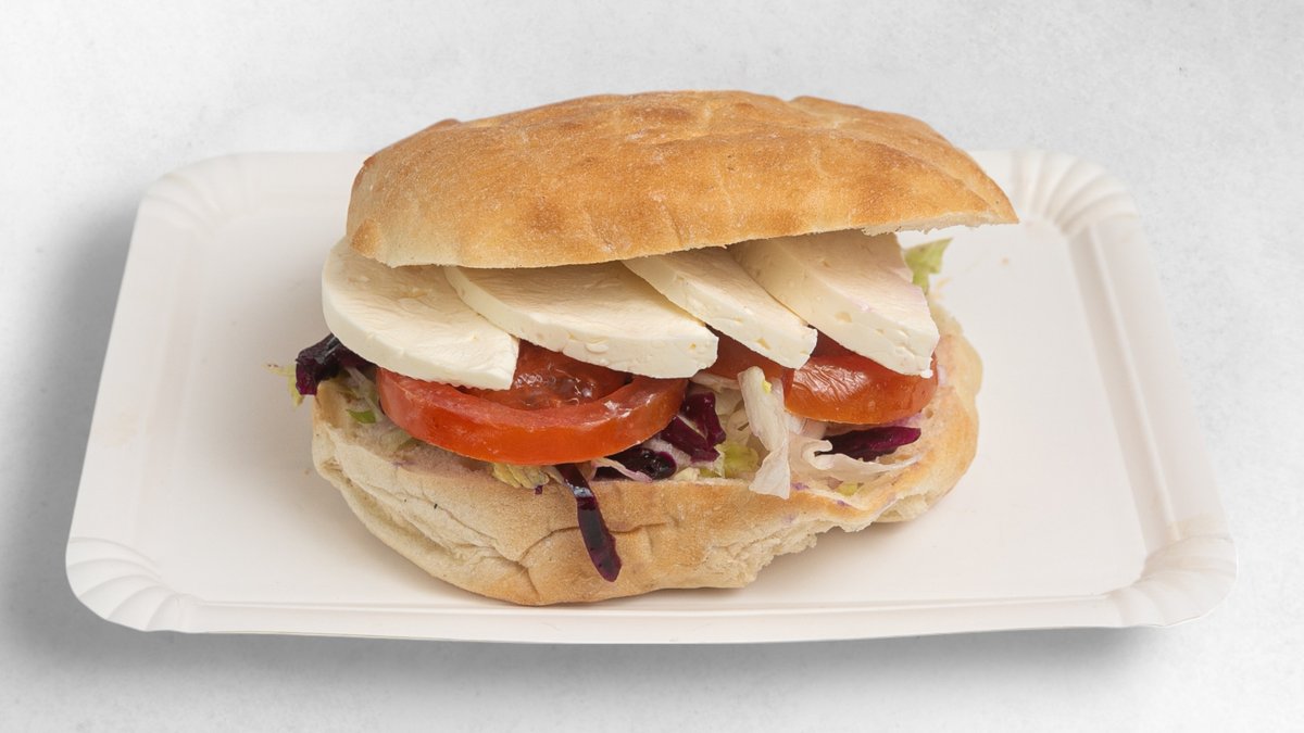 Brot, Schafskäse, Gemüse, Joghurtsoße