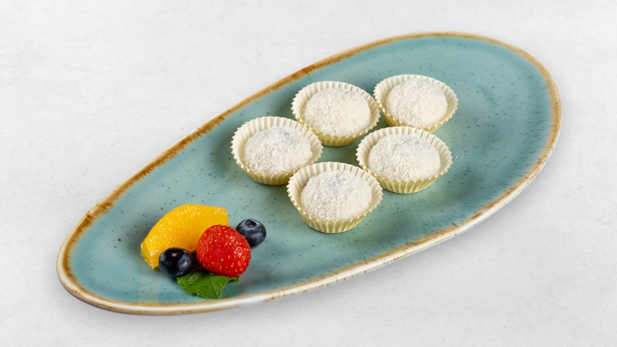 4 Stück Zarte Reismehlbällchen, Sesam- & Erdnussfüllung, Kokosmantel