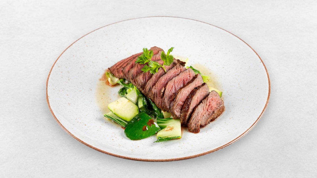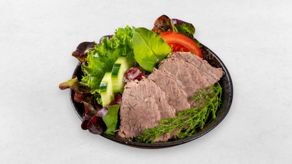 Rindfleisch-Carpaccio, Salat-Mix, Essigsoße