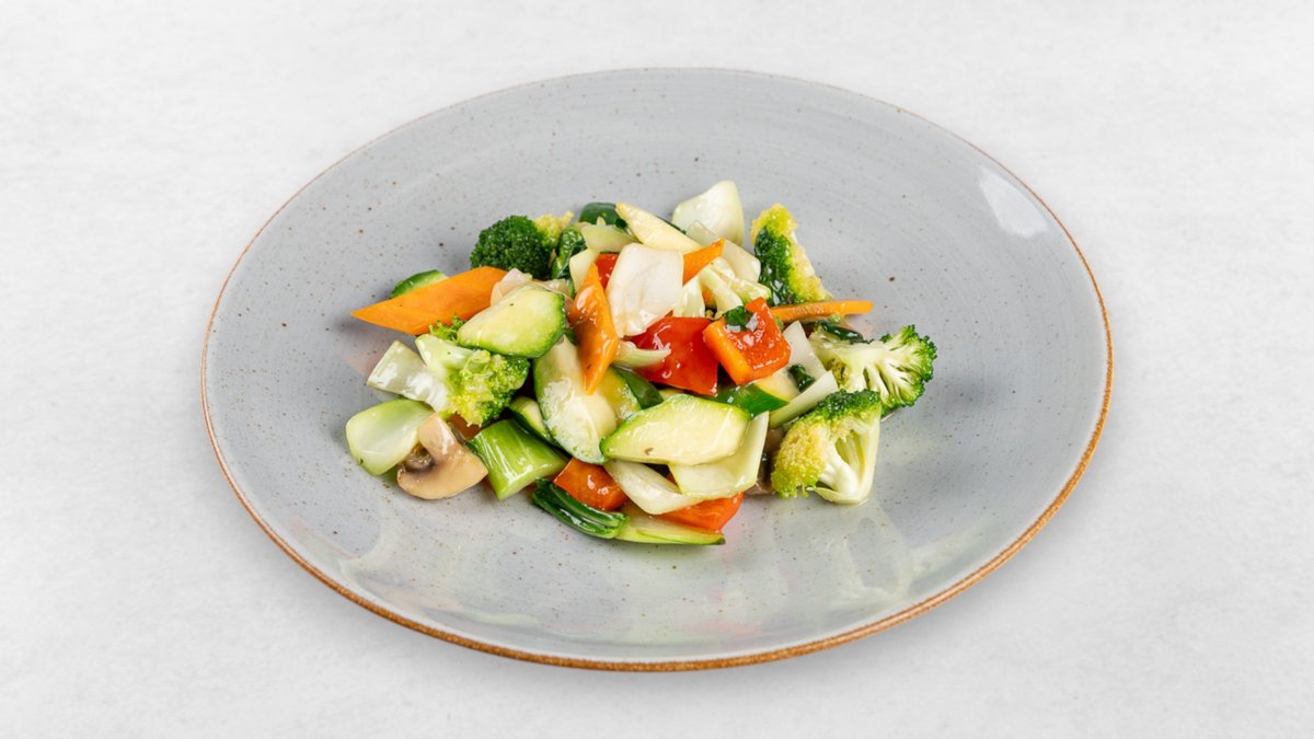 Okra, Spargel, Mango, Avocado, veganer Kaviar, Erdnuss, Mango-Soße