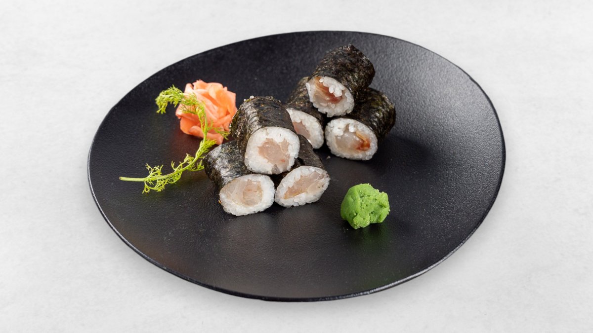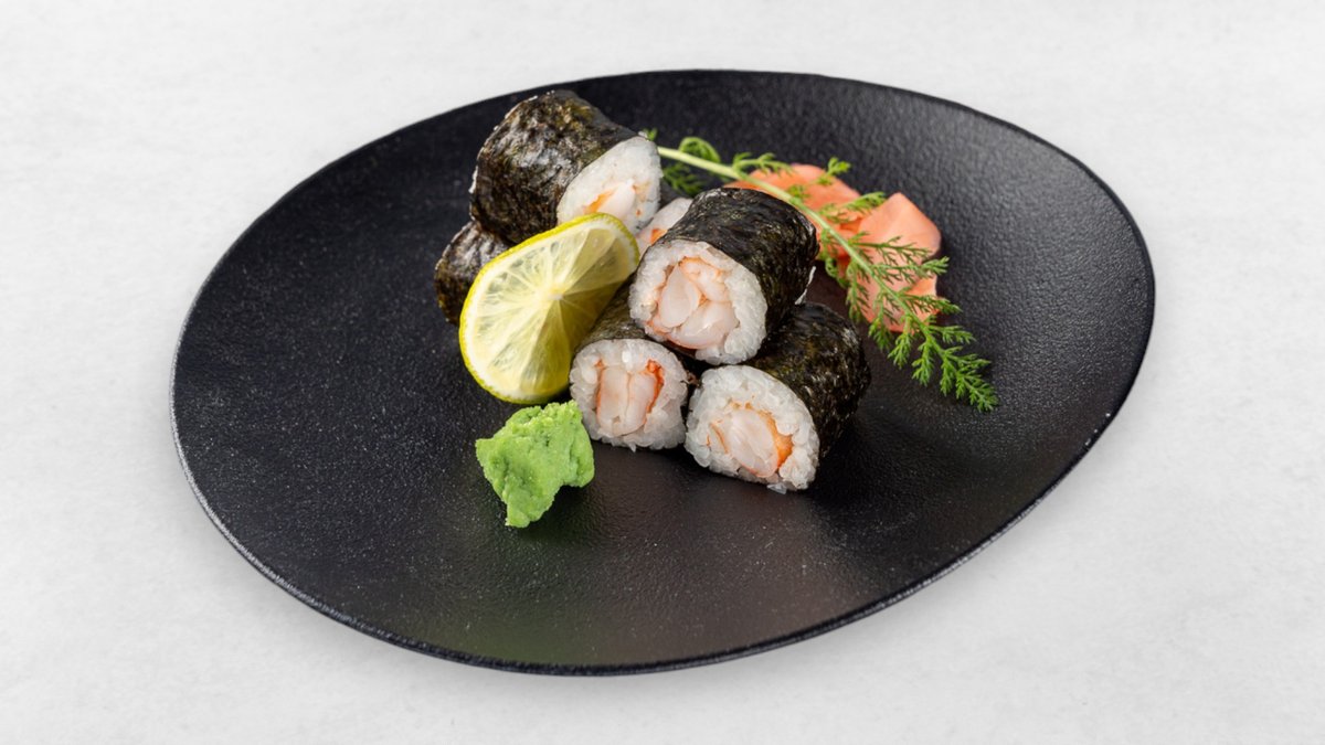 Tempura-Garnele, Lachs, Avocado, sharfe Mayonnaise