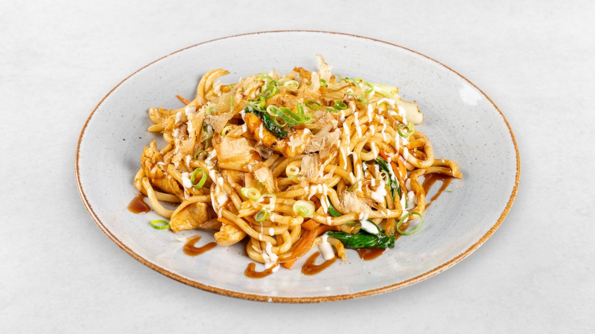 Fleischflocken vom Hühnerfleisch, frittiertes Hühnerfleisch, Philadelphia, Salat, Thousand-Island-Dressing, Teriyaki-Soße