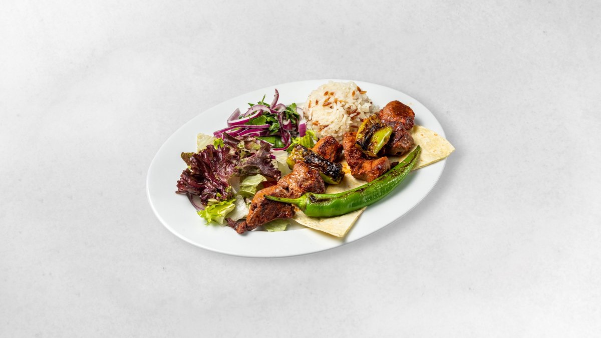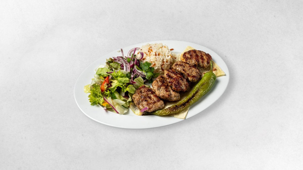 Faschiertes Kalbfleisch vom Spieß, Fladenbrot, Salat, Beilage deiner Wahl