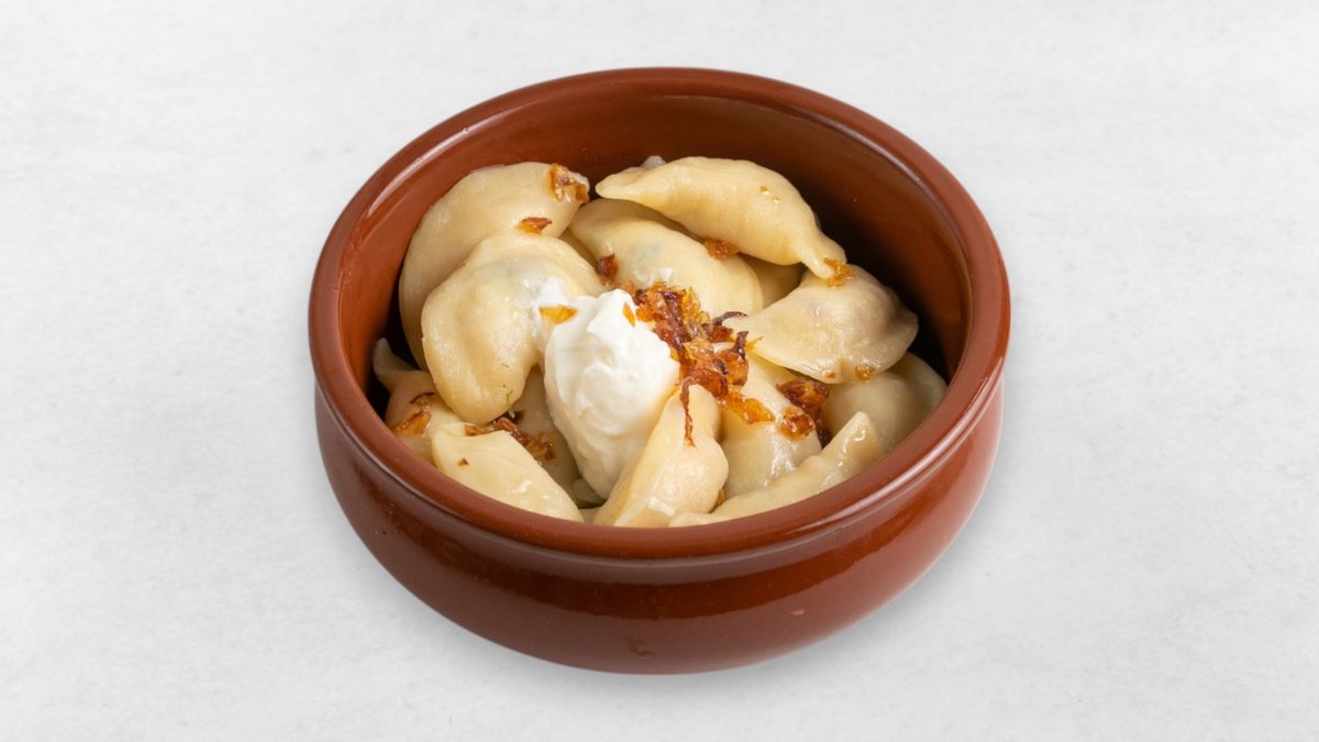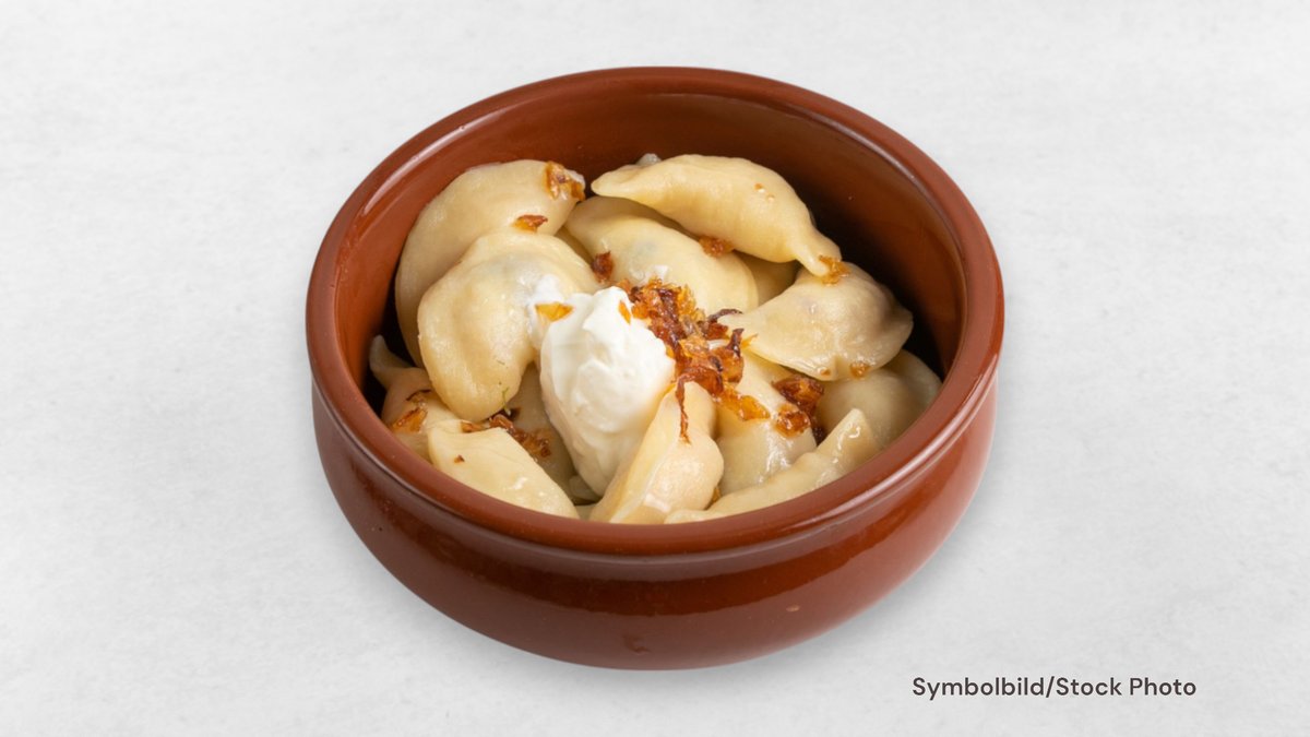 Feiner Kartoffelteig mit einer Füllung aus Hühnerleber und Zwiebeln, goldbraun angebraten.