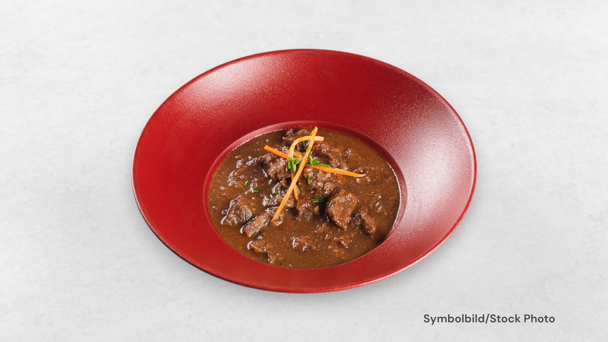 Zarte Rindfleischstücke, langsam in einer aromatischen Zwiebel-Gewürz-Sauce geschmort, serviert mit lockerem Buchweizenbrei.