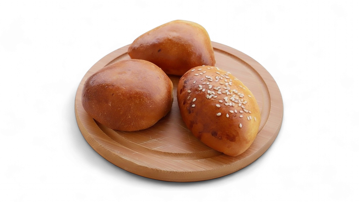 Hausgemachte, goldbraun gebackene Pirozhki mit saftiger Huhn-und-Pute-Füllung.