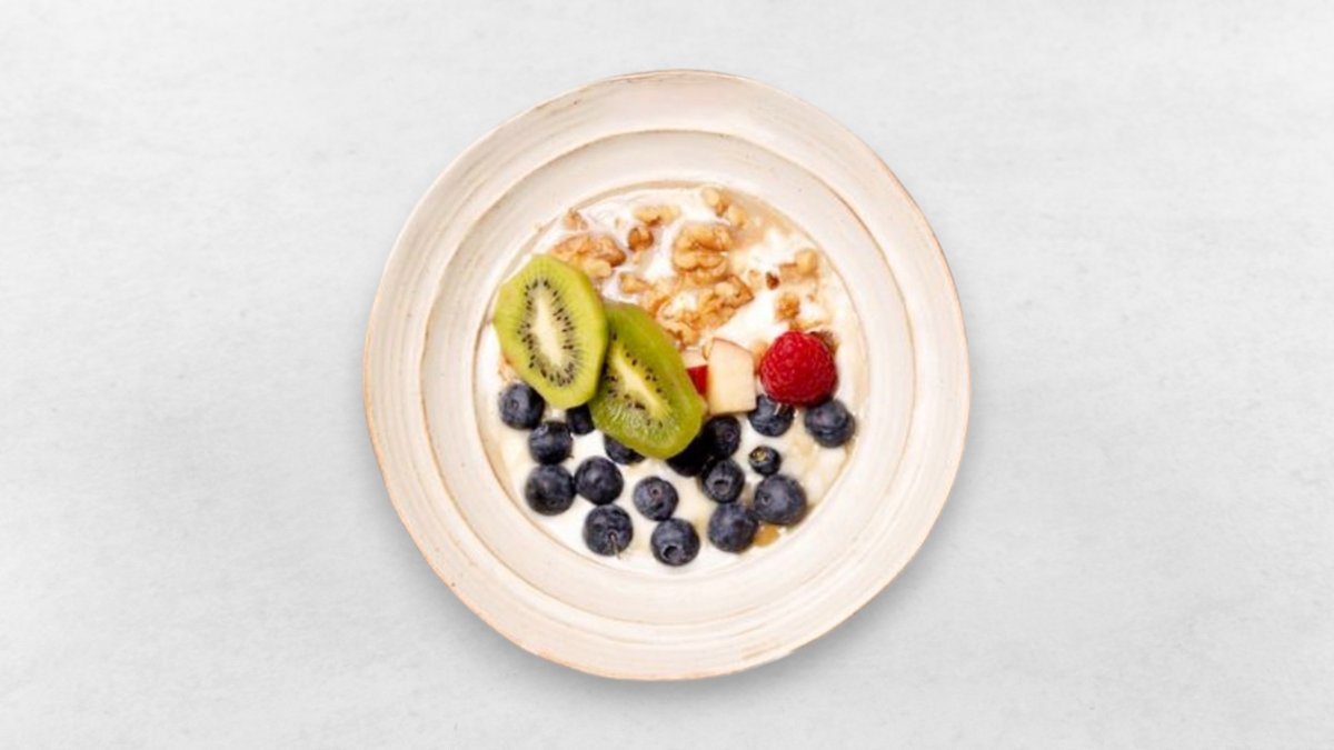 Naturjoghurt, Granola, Walnüsse, Banane, Goji-Beeren, Honig