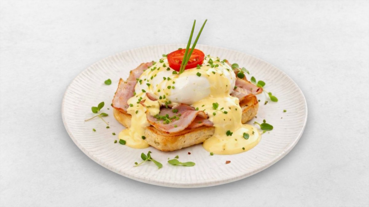 Brioche, Schinken, Tomatenpesto, pochiertes Bio-Ei, Sauce hollandaise
