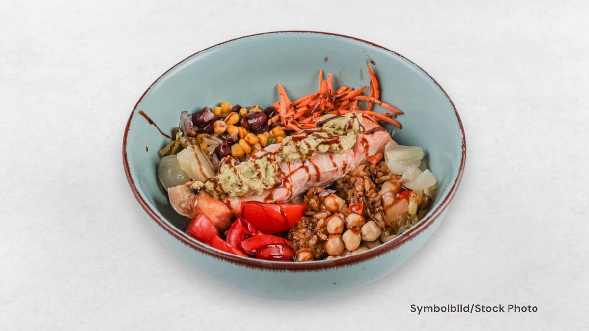 Haferflocken, Kokosmilch, Mango, frische Beeren, Beerensoße