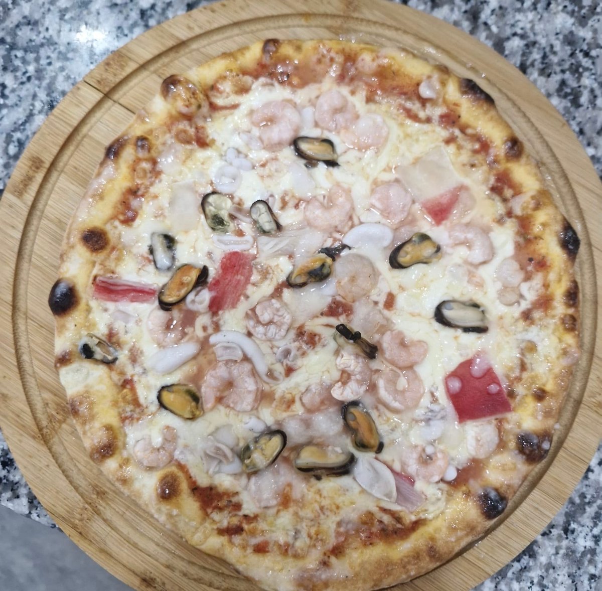 Schinken, Speck, Pfefferoni, Zwiebeln, Shrimps, Knoblauch