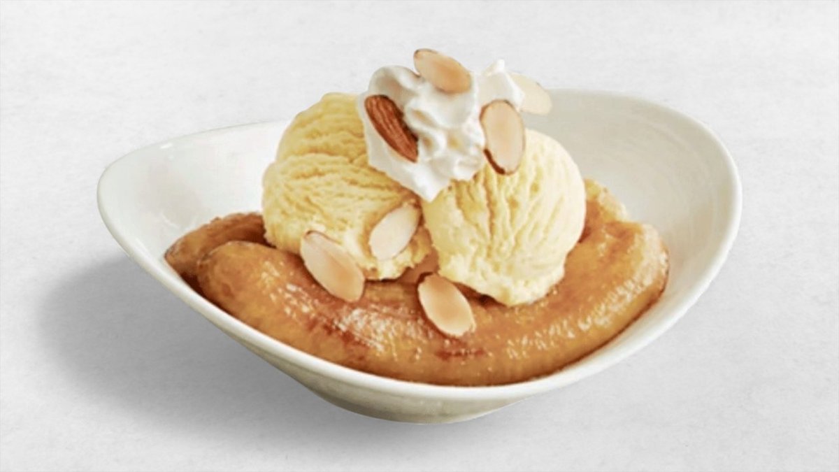 Enthält Nüsse, karamellisierte Banane mit Honig, Cashewnüssen und OHNE Eis