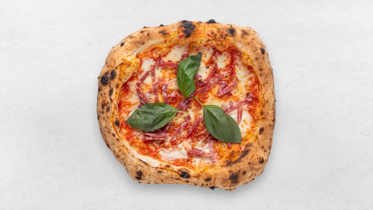 Tomaten, Fiordilatte di Agerola, Salame Napoli, Pecorino Romano, Basilikum, Chili, Olivenöl nativ extra