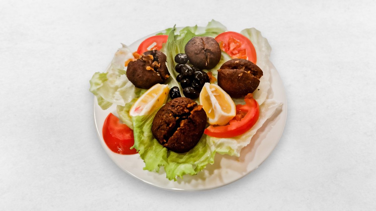 5 Stück Gemüse & Fleisch gefüllte Bulgurbällchen, Blattsalat, Cacigi