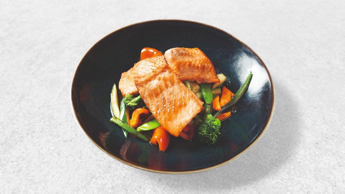 Gegrilltes Lachsteak mit Teriyaki-Soße (Süß)