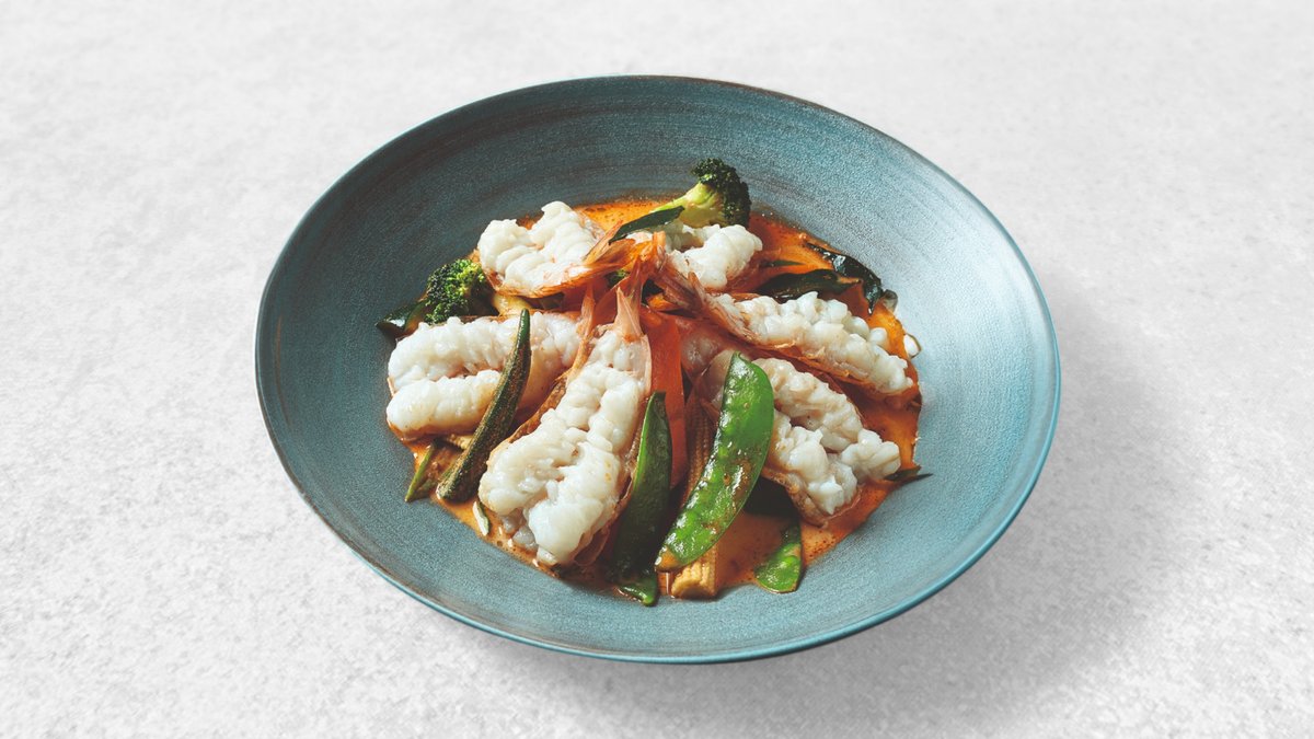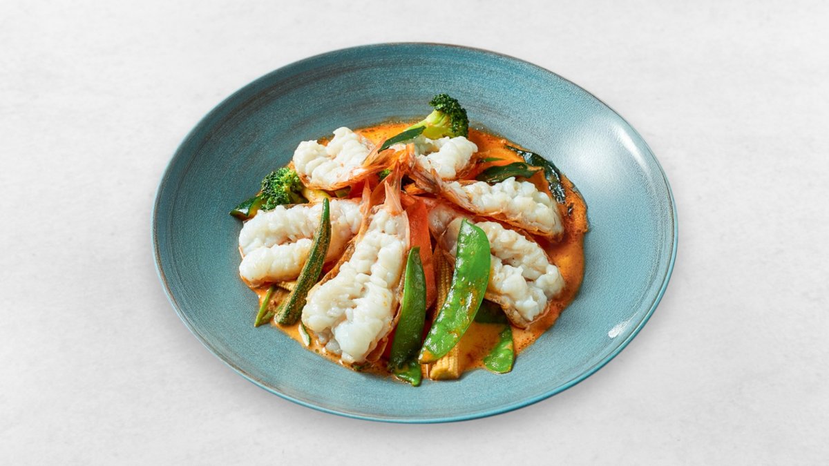Scharf Kokoscurry mit gegrillten Shrimps