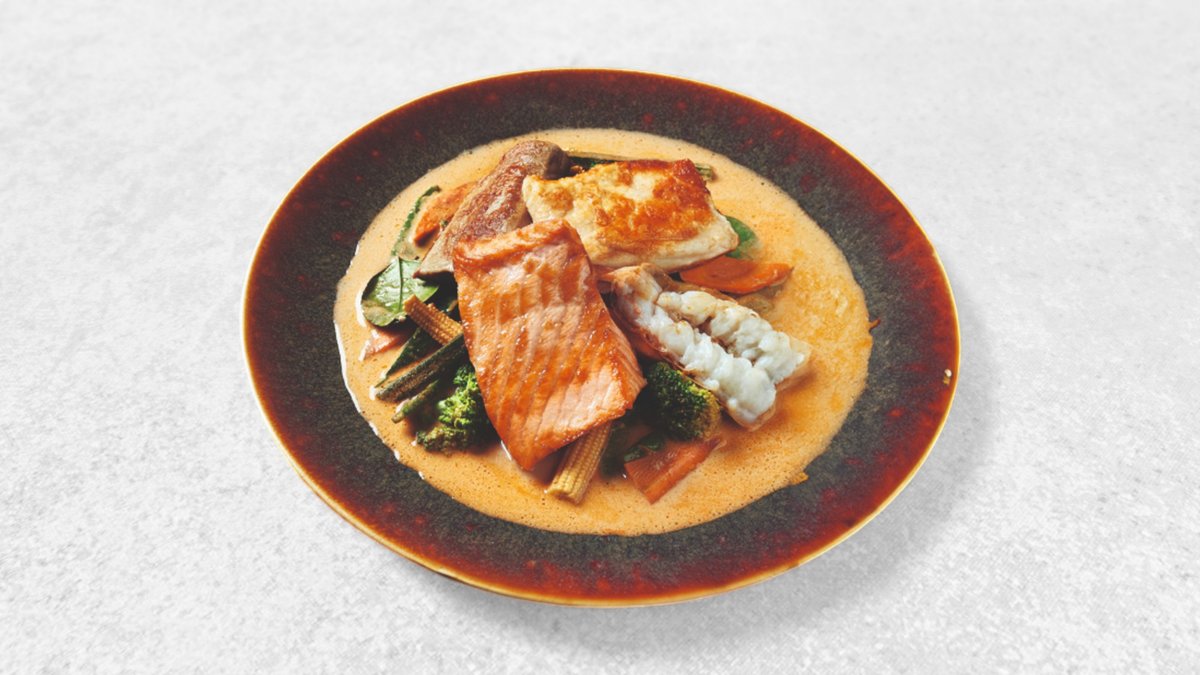 Scharf Thunfisch, Lachs und Garnelen auf Thai Art