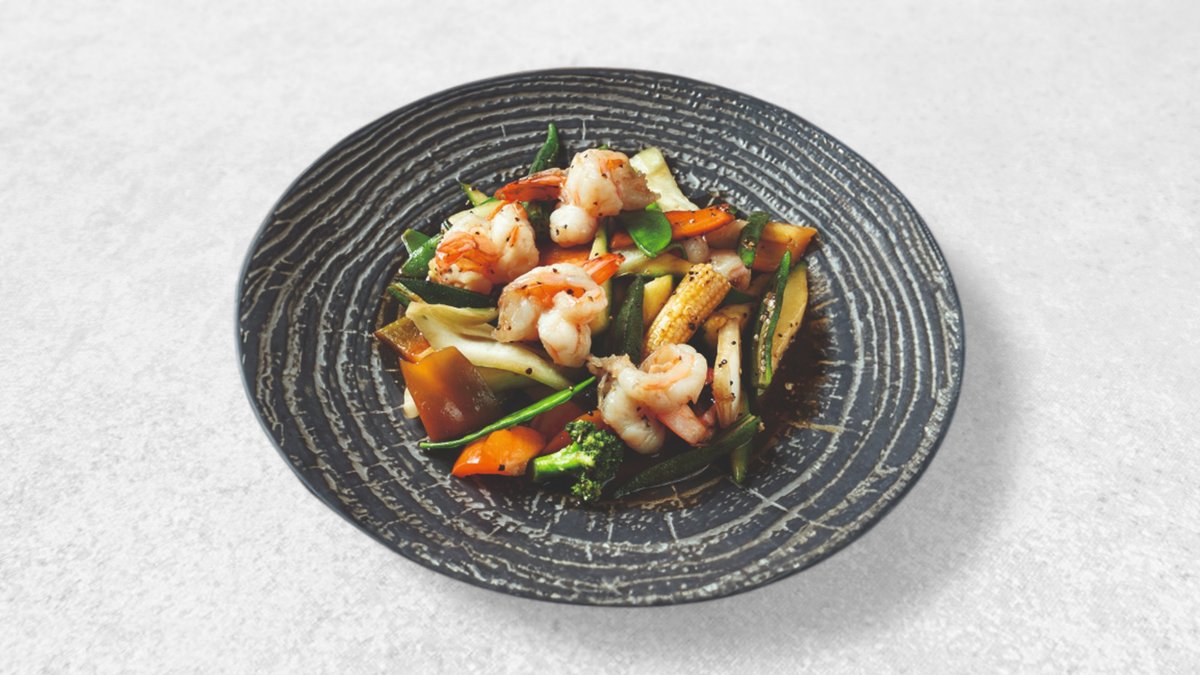 Scharf Gegrillte knusprige Garnelen mit schwarzem Pfeffer