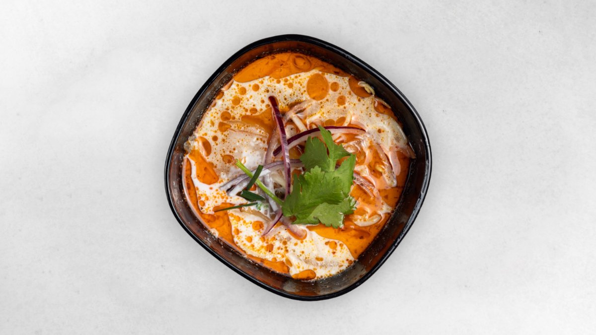 Alle Gerichte werden mit Reis, Basilikum und Koriander serviert
