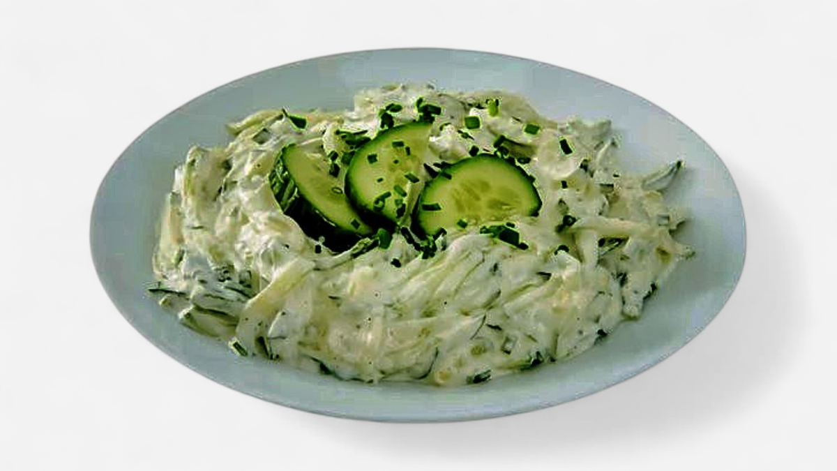 mit Mayonnaise, Salat, Gurken, Tomaten und Zwiebel