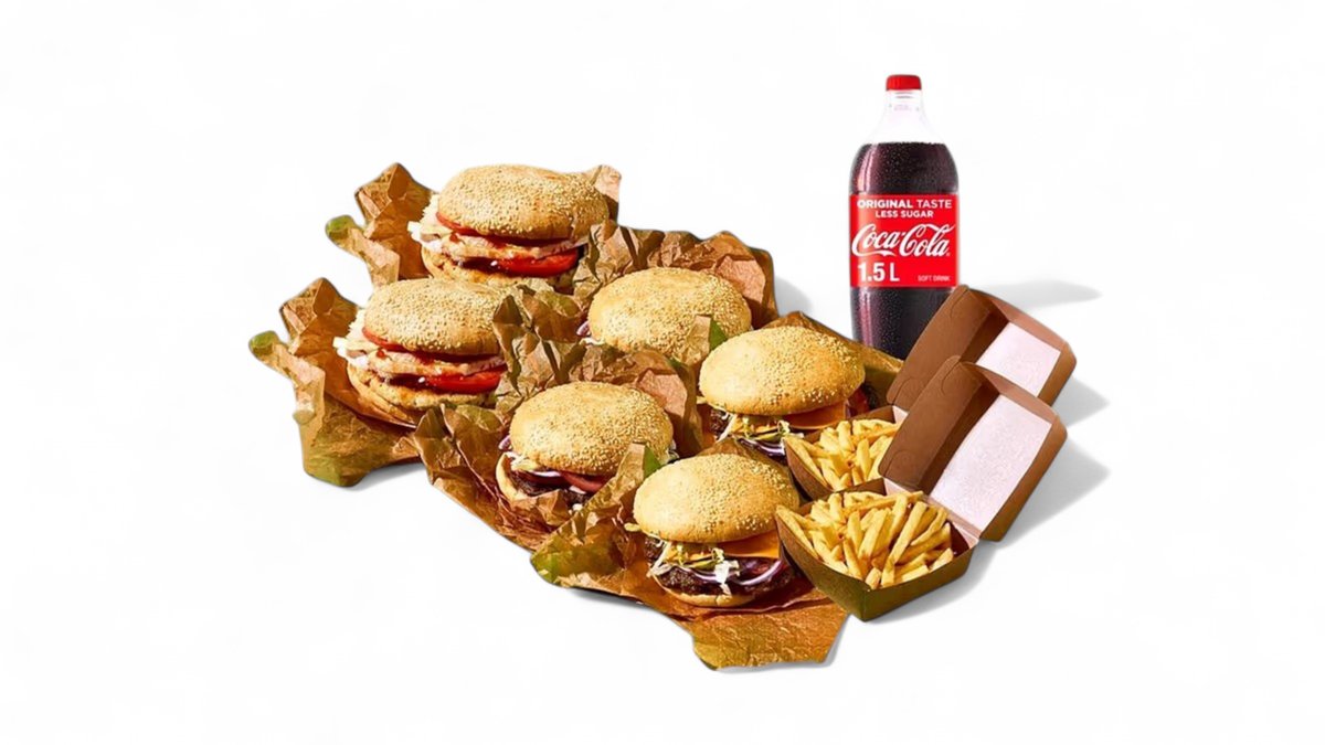XL Menü: 2x Schnitzel + 2x Pommes + 2x 0.33l Getränk