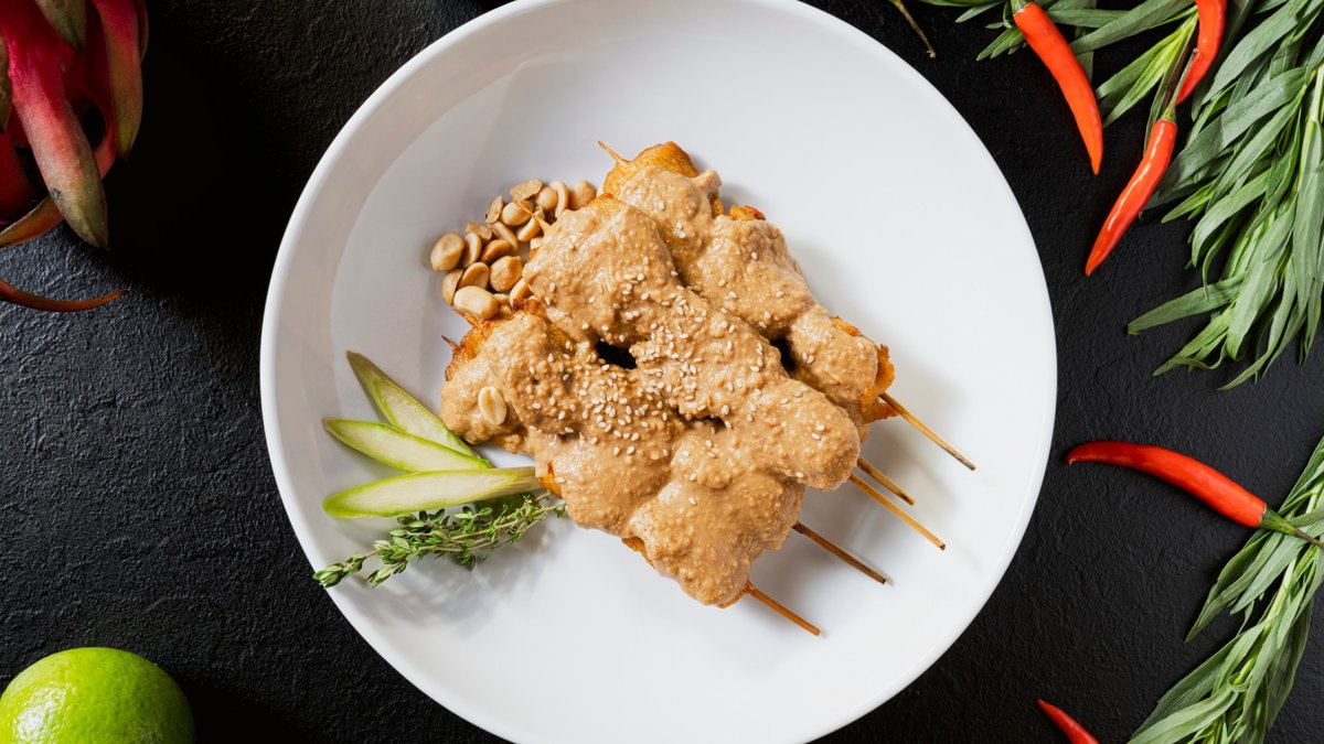 scharf Hühnerfiletspieße mit Erdnusssoße