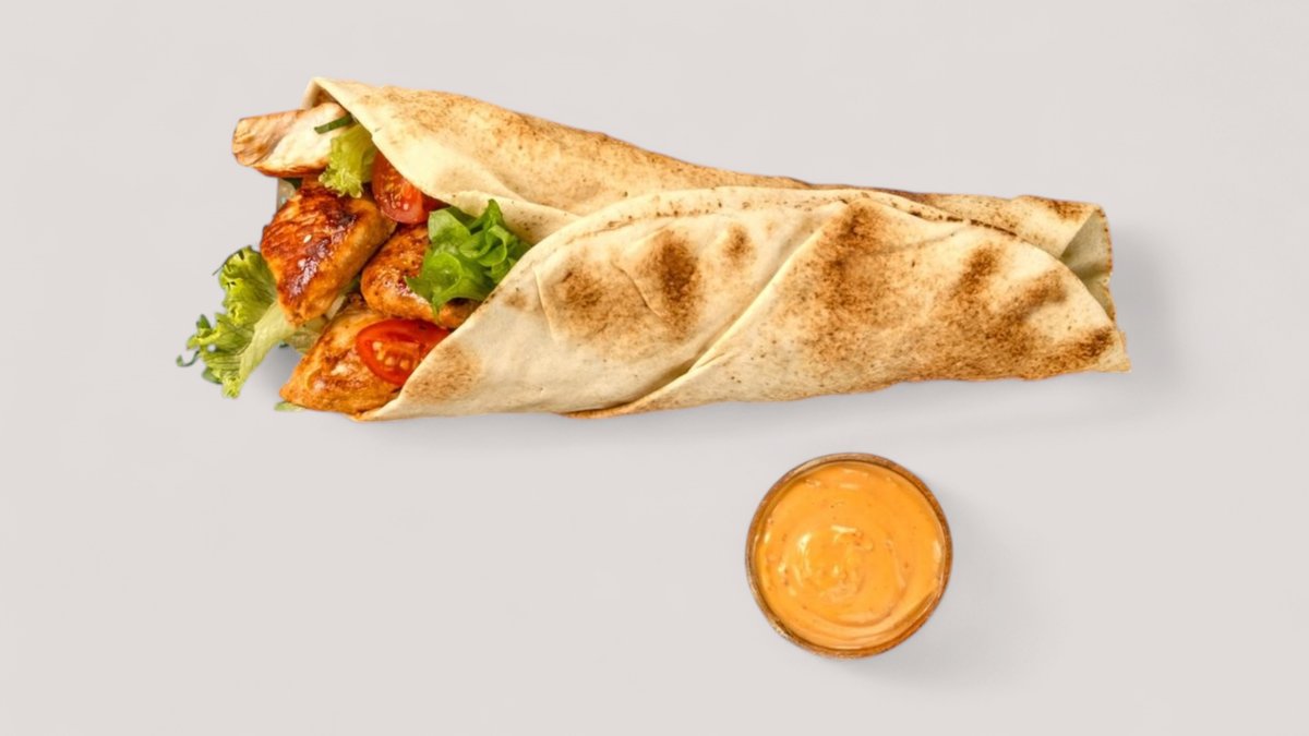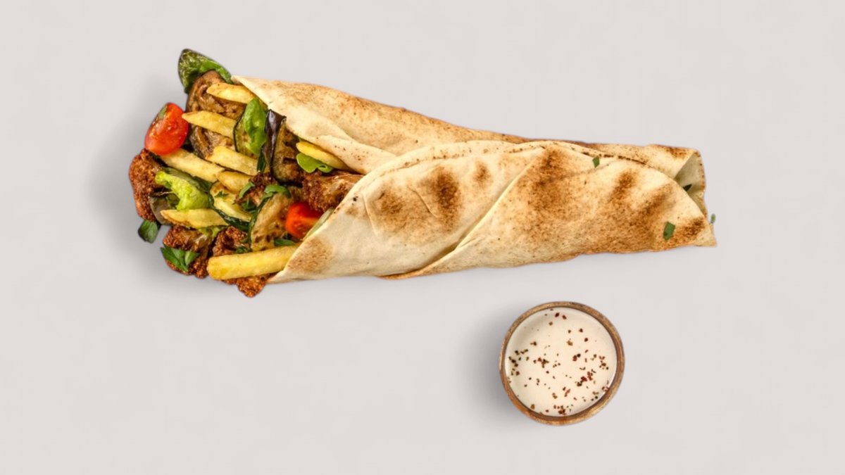 alle Wraps werden mit frischem arabischem Brot, Salat und einer Soße deiner Wahl zubereitet