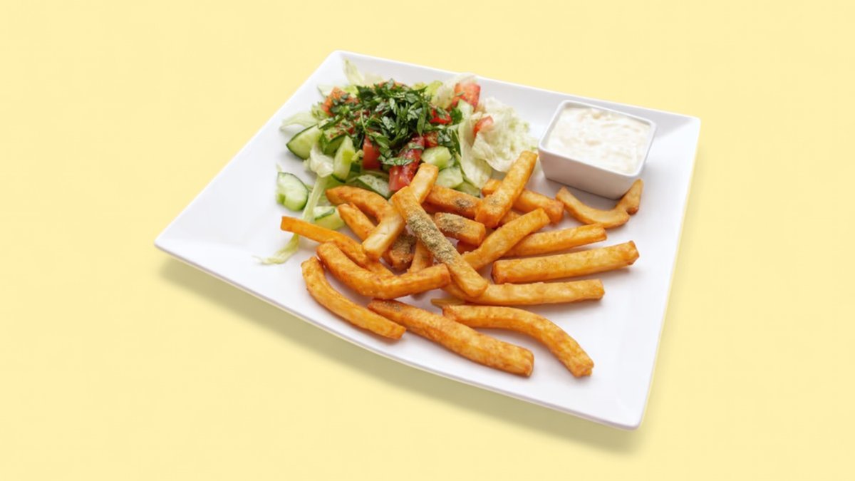 mit Fritten, Beirut Soße und einem Dip deiner Wahl
