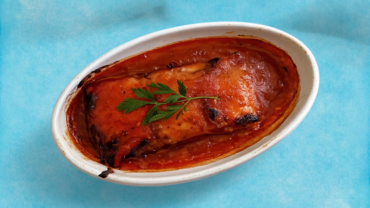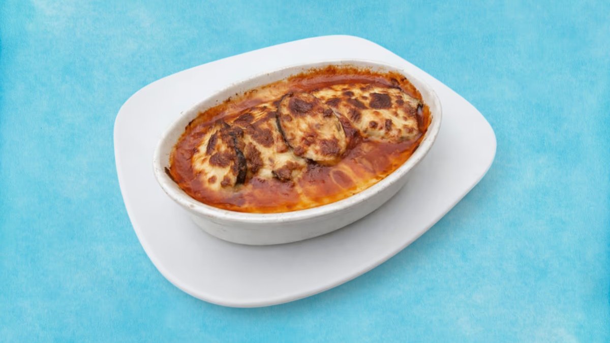 mit Auberginen, Hackfleisch vom Rind, Tomatensoße und einer Beilage deiner Wahl
