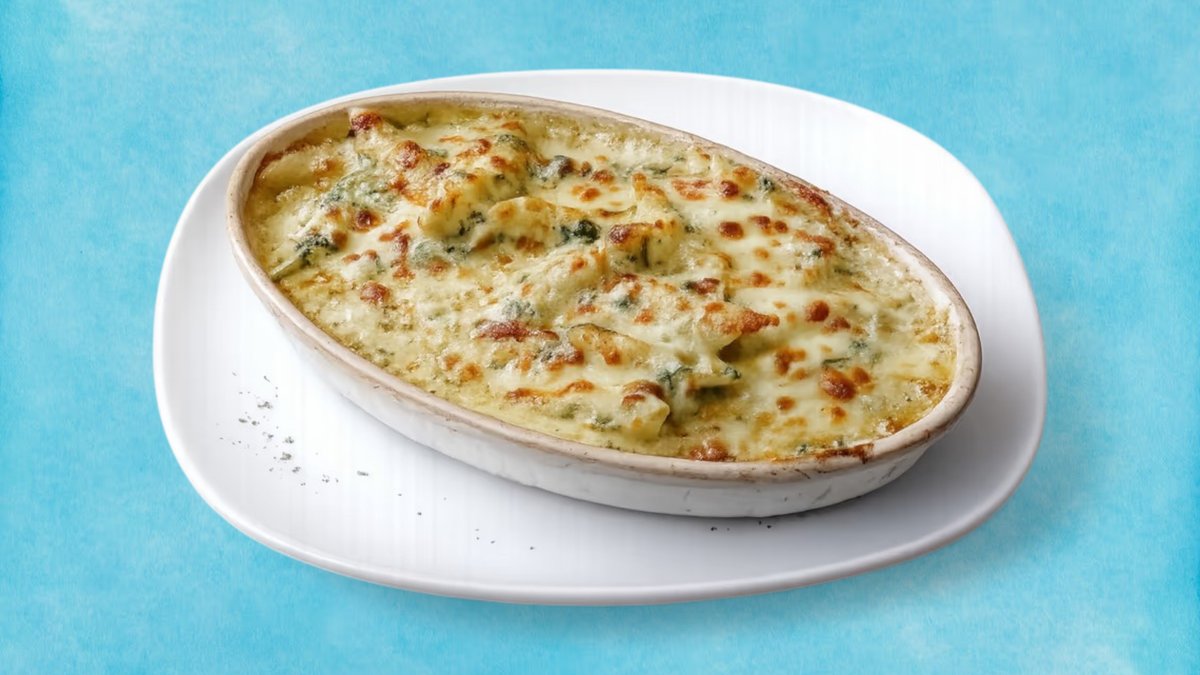 alle überbackenen Gerichte werden mit einem Beilagensalat serviert