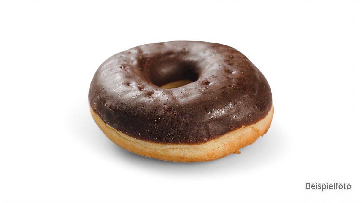 luftig-lockerer Donut mit zartschmelzender Schokoladenglasur Das Gericht wurde mit Schokolade zubereitet und kann Spuren von verschiedenen Nüssen enthalten.